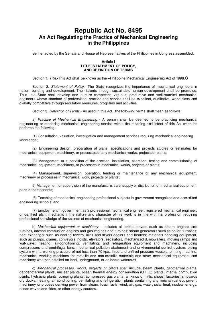 Ra8495 Mechanical Engineering Law